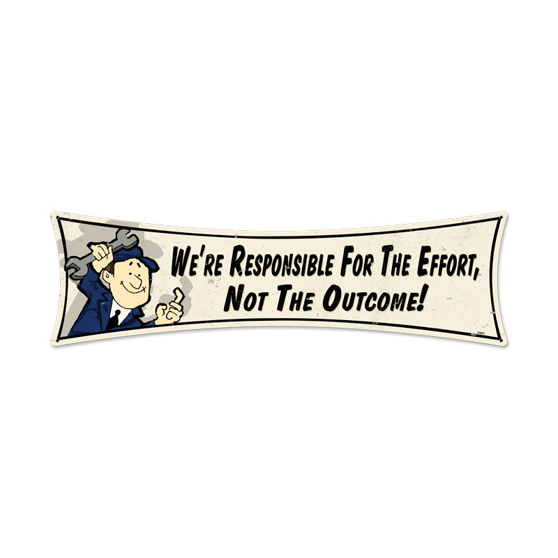 This Responsible bowtie metal sign measures 27 inches by 8 inches and weighs in at 2 lb(s). This bowtie metal sign is hand made in the USA using heavy gauge American steel and a process known as sublimation, where the image is baked into a powder coating for a durable and long lasting finish. This bowtie metal sign