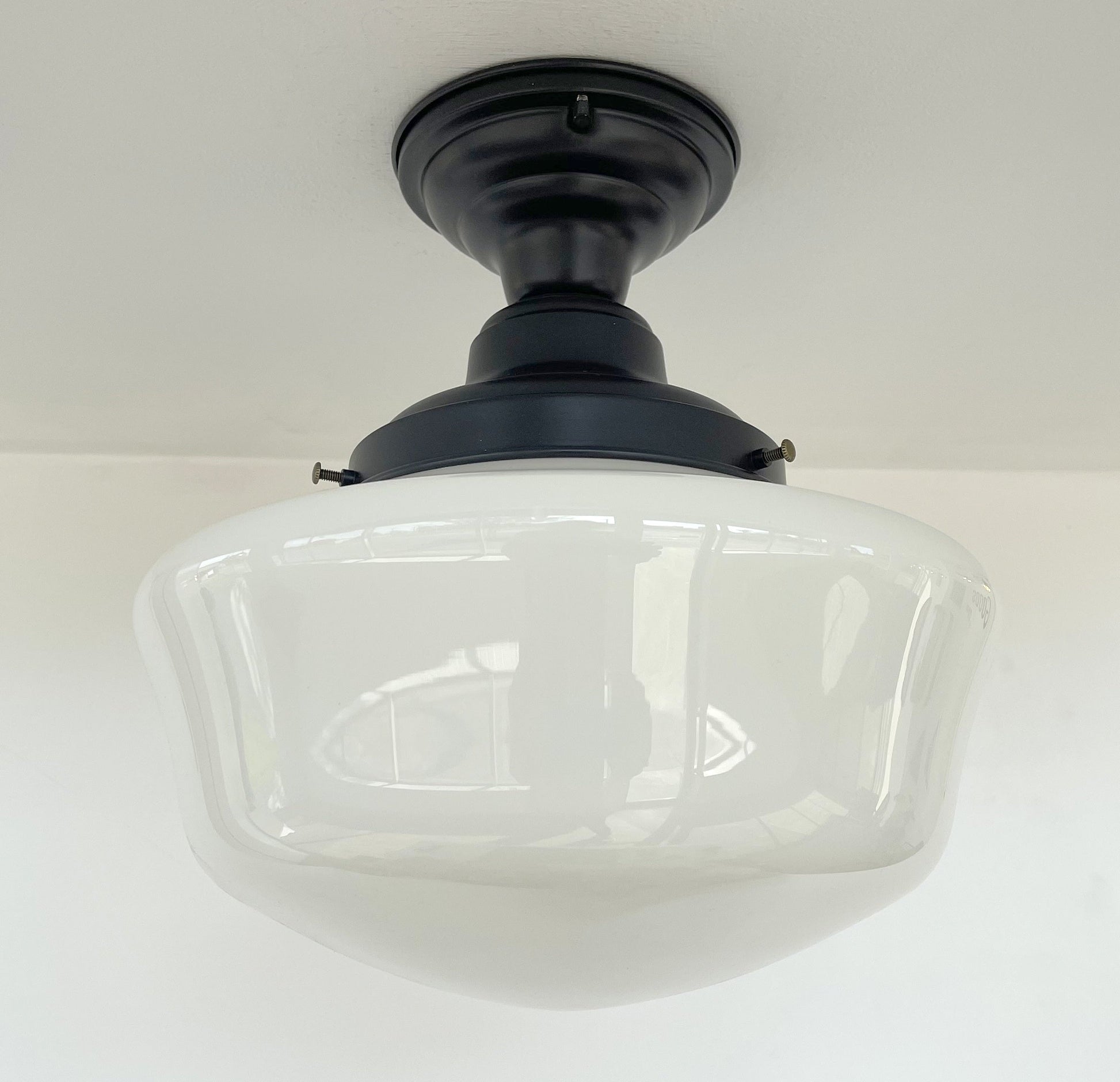 Feature this as a kitchen ceiling light or bathroom milk glass lighting fixture that completes the room with style and unique design. With this extra large size milk glass flush mount lighting, it fits well into the size of today's homes.