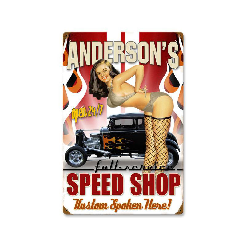 Speed Shop, Personalized, Vintage Metal Sign, 16 X 24 Inches
