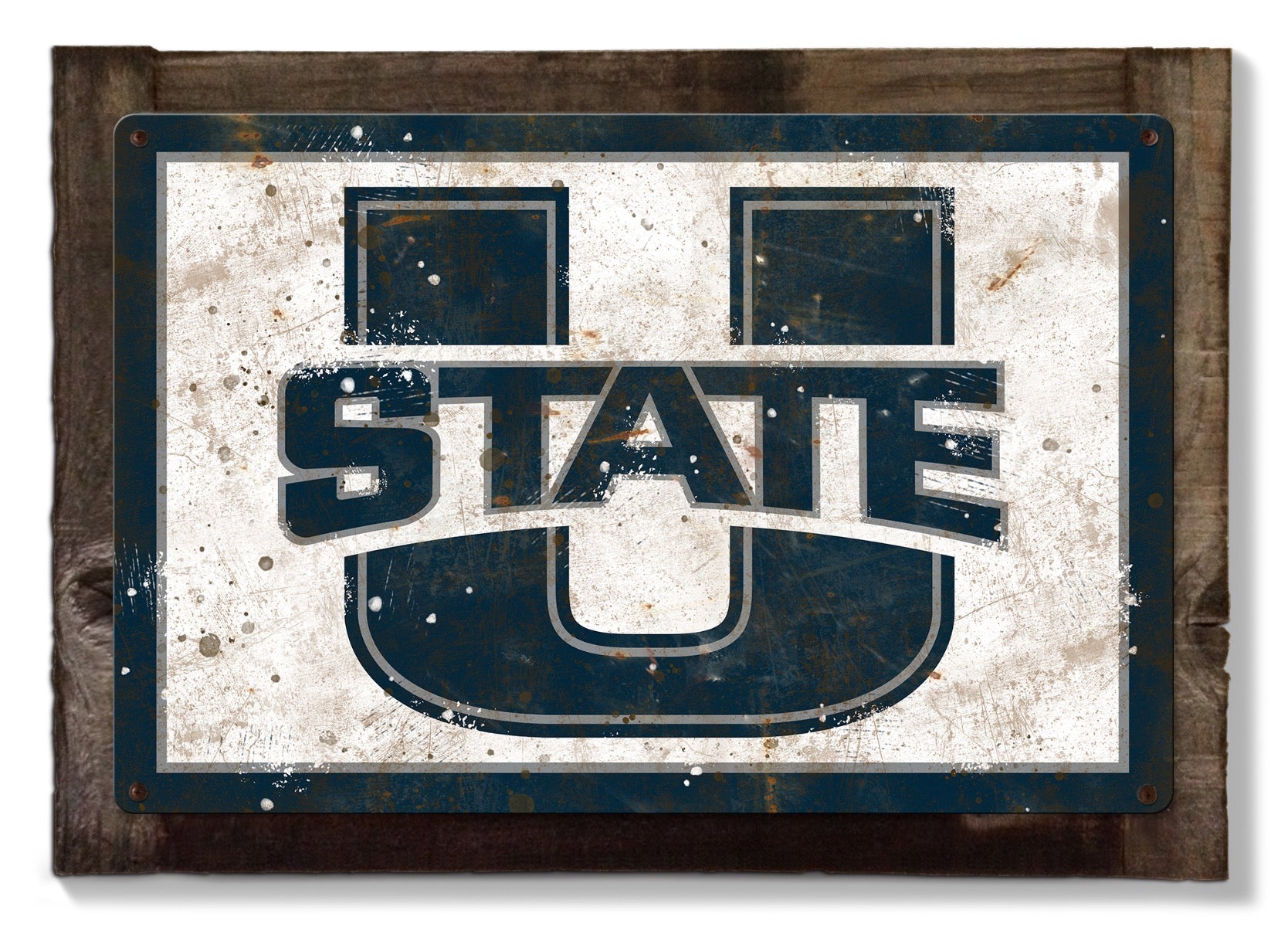 Utah State Wall Art, NCAA Rustic Metal Sign, Optional Rustic Wood Frame, College Teams, Mascots, and Sports