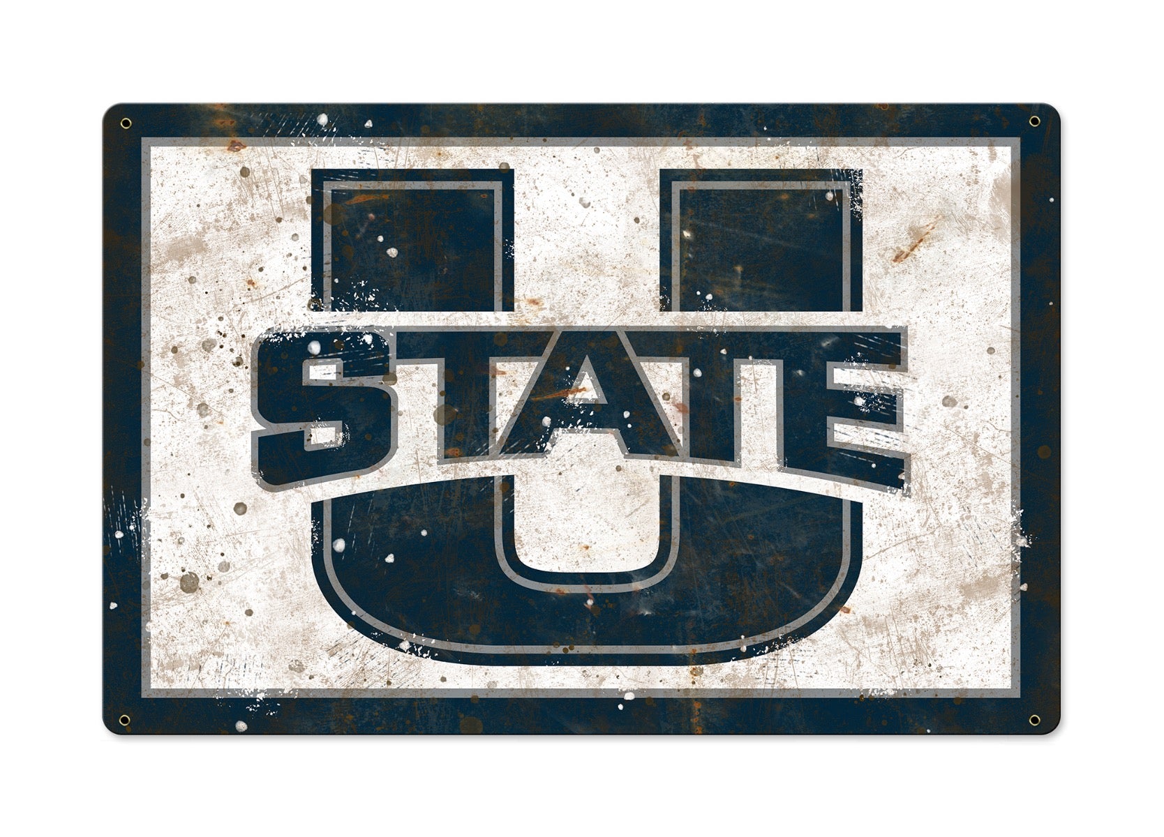 Utah State Wall Art NCAA metal sign is made from 24 gauge American steel (No Flimsy Tin Here). Select from three different sizes: Large, Medium, Small. Also, available with an optional rustic wood frame. Designs are baked into a powder coating for a durable finish. Unlike other tin signs, canvas prints, and posters, our metal signs will not bend, fold, dent, or wrinkle over time. You can take a hammer to our signs. Our signs are hand made just like in the days. Rest assured these metal signs are made to last!