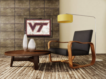 Virginia Tech Wall Art, NCAA Rustic Metal Sign, Optional Rustic Wood Frame, College Teams, Mascots, and Sports