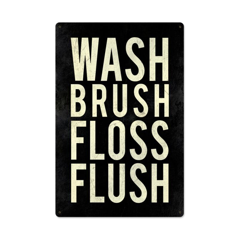 This Wash Powder Room metal sign measures 16 inches by 24 inches and weighs in at 4 lb(s). This metal sign is hand made in the USA using heavy gauge American steel and a process known as sublimation, where the image is baked into a powder coating for a durable and long lasting finish. This metal sign
